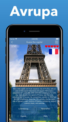 Avrupa ülkelerinin başkentlerini biliyor musunuz? Afrika'nın ya da Asya'nın başkentleri? Oslo'nun Norveç'in başkenti ve en büyük şehri ve Varşova'nın Polonya'nın başkenti ve en büyük şehri olduğunu biliyor musunuz? Coğrafya ile ilgili bu ücretsiz uygulama ile dünyanın tüm ülkelerinin başkentinin tüm şehirlerini öğrenebilirsiniz! Coğrafya bilginizi test edin! Dünyanın tüm ülkelerinin başkentlerini sanırım!