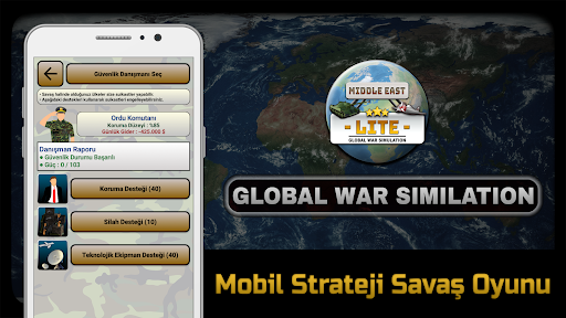 Global War Simulation Middle East LITE, mobil telefon ve tabletlerde modern savaş oyunu, askeri strateji oyunu, simülasyon oyunu ve tycoon oyunu kategorilerinde çok başarılı bir oyundur.