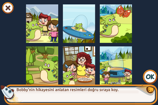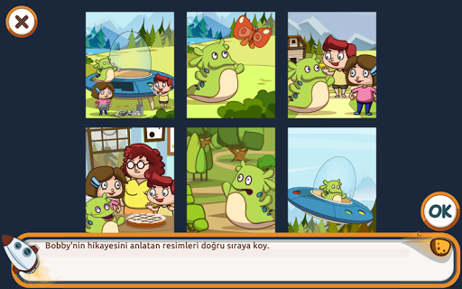 Bir hikâye oluşturmak için resimleri doğru sırayla yerleştirme,