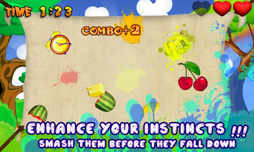 Enter the time zone of the game and as you tap the yellow clock you will get the extra seconds to improve score and if you tap the black one you few seconds will be deducted. Along the time management skills the fast smashing of fruit are necessary in order to score high.