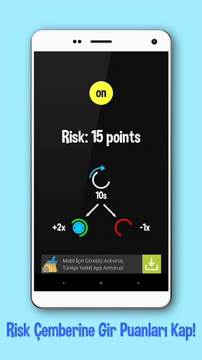 **Normal oyundan 125 puan aldıktan sonra Risk açılır. Toplam puanınız on binin altındaysa 10, üstündeyse 15 puan risk edebilirsiniz. Risk çemberi her oyunda bir defa rastgele bir zamanda ortaya çıkar ve 10 saniye boyunca döner, bu süre içerisinde çembere girebilirseniz risk ettiğiniz puanın iki katını kazanırsınız. Giremezseniz risk puanınız kadar kaybedersiniz. Riski on/off butonuyla açıp kapatabilirsiniz.