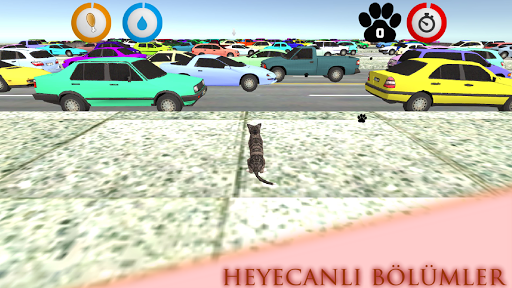 There are two main maps and 15 missions. The city and farm house. Complete missions by finding your kitties. You are going to get thirsty and hungry. Find food and water as moving on your mission. Watch out for human, cars and dogs in the city and animals in the farm house. There are some hidden places for bonus paws.