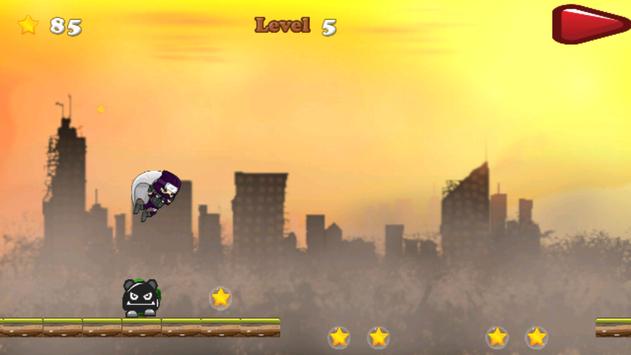 the goal of the game and like any other running ninja games is to beat different levels by reaching the end of each level and earn more points, and you can do that by collecting red apples and stars that can be found all over the running / racing track, keep in mind that the mission is not as easy as it looks as you are gonna face different difficulties and obstacles, you have to avoid all the obstacles on your way by jumping over them, so you need to be fast and precise when jumping, and make sure you stay on the track and don't fall, you'll find some useful tools and signs that will help you achieve your goal, some will help you jump higher and longer and some will give you a higher speed.