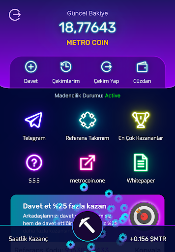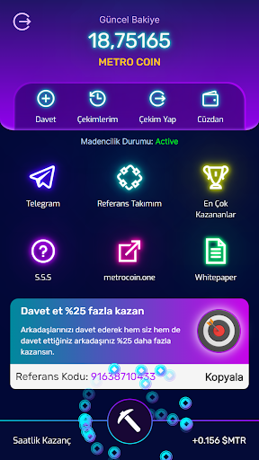 Kullanıcılar, madencilik yaparken arkadaşlarını davet ederek daha fazla para kazanma şansına sahip olurlar.