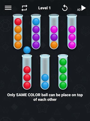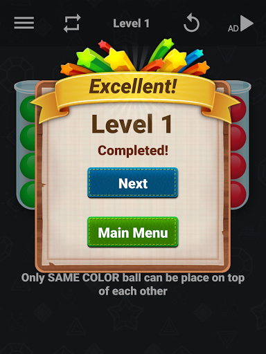 Solve the game by sorting colorful ball bottle. Enjoy the mental challenge as you stack the colorful tube. Think, strategize and predict every move.