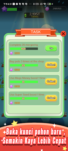 para ağaçları da birleşik bir oyundur.Ağaçları daha yüksek bir seviyede yapmak için aynı 2 ağacı birleştirin. Dikim ve Birleştirme Ağacı