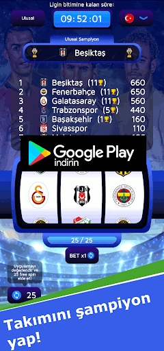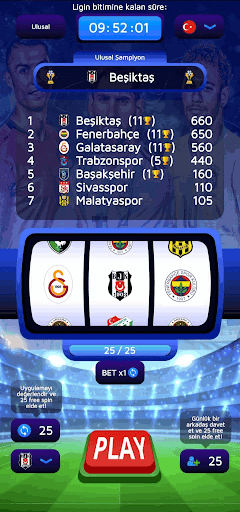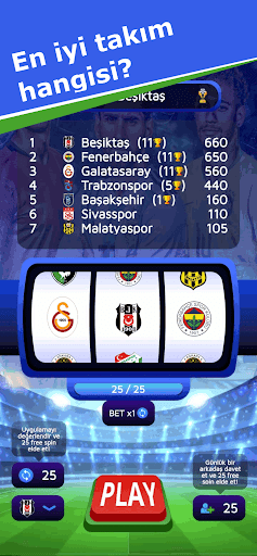 Slotlarınızı çevirin ve favori Futbol takımınızın en çok taraftarla futbol şampiyonu olmasına yardım edin!