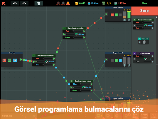 Nesneleri fareyle ekranda sürükle, çizgilerle birbirine bağla. Dene, yanıl, düzelt. ""Yayın"" düğmesine bas ve verilerin ekranda akışını izle.