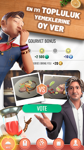 Yaptığın yemekleri oyuncu topluluğuyla paylaş: Oyuncuların puanlamaları sana ödül kazandırır. Diğer yemeklere oy vererek daha fazla oynamak için kaynak kazanırsın!