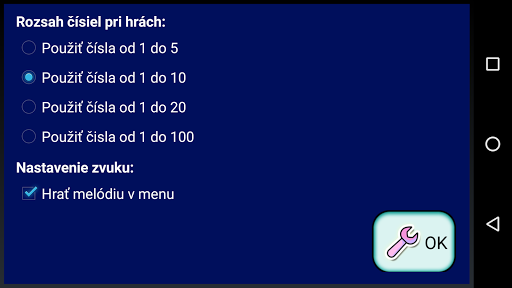 V aplikácii je možné znova nastaviť rozsah čísiel 1 do 5, 1 do 10, 1 do 20, alebo 1 do 100. V aplikácii je nová hra „Čísla od 1 do 100“.