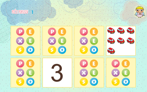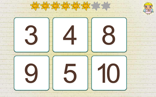 Nájdi číslo napr. 8 a na obrazovke sa zobrací 6 kartičiek s číslami.