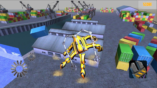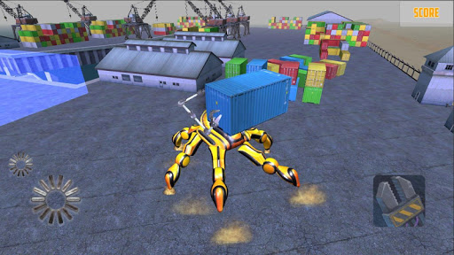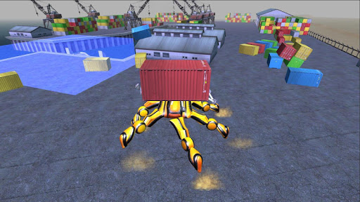 Kargo makinesinin robot kolu sayesinde blokları rıhtıma saklarken, 6 bacak örümcekiyle benzersiz bir model bu robot ve robot pilotu arasındaki malların taşınmasının geleceği uzaktan kumandalı drone ile kutuları iyi limanlara taşır!