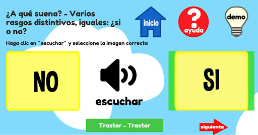 El objetivo de esta aplicación es estimular la discriminación auditiva en pares de palabras que difieren en un solo fonema por varios o un solo rasgo distintivo y en contextos oracionales facilitadores y no facilitadores para favorecer la comprensión.