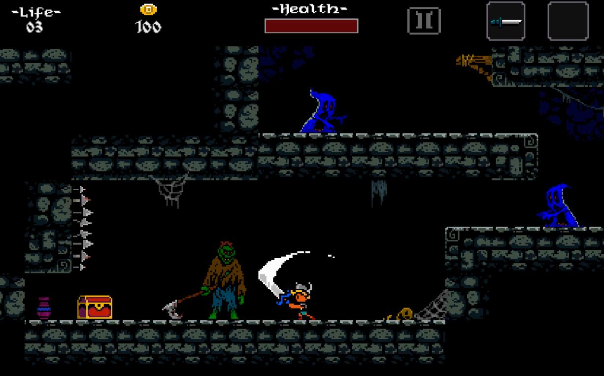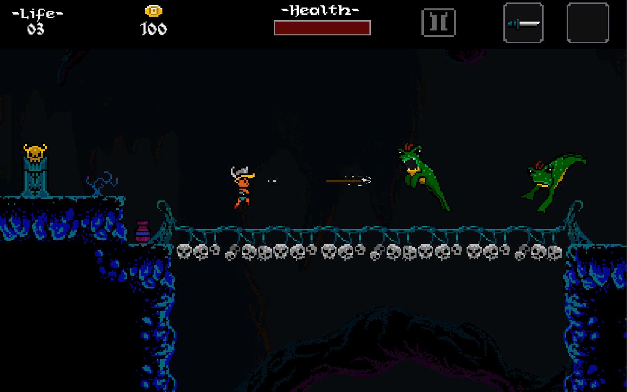 Ghoulboy is a retro-inspired halloween style action platform inspired nes,snes consoles.Exciting new platformer that combines the action-rpg genre with adventure gameplay. 2D action, heroic characters, gloomy environments, demonic bosses, these all seem to excite players a lot.Pixels will be combined with other cool retro elements and the result will certainly be something that will meet the needs of mobile gamers. Once in-game, users will get to control a heroic character who will often be seen throwing a spear to create additional platforms. To boot, puzzle and combat elements will further enhance the experience. You wouldn’t want to miss out on it!With the gold that you collect, you can increase your health level, your arsenal of weapons to be thrown away.