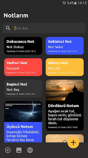* Oluşturduğunuz notlar ana ekranda ikili liste şeklinde karşınıza çıkar. Oluşturduğunuz notun ana ekranda resim varsa küçük resim ,tarih, başlık ve alt başlık küçük resim halinde görülür.