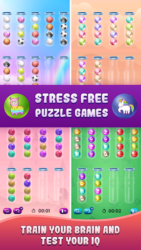 Hızlı Oyun: Bu oyun modunda sınırsız renk sıralama seviyelerinin tadını çıkarın. Bu oyun modu, şaşırtıcı topu sıralama oyunu zorlukları ile birden fazla benzersiz seviye oluşturur.