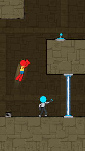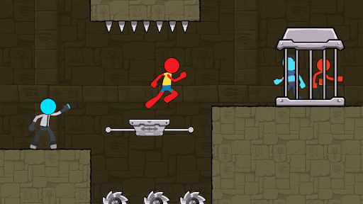 Kırmızı ve mavi stickman ikilisini kontrol et Gezinme düğmesiyle hareket etmek için.