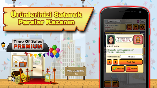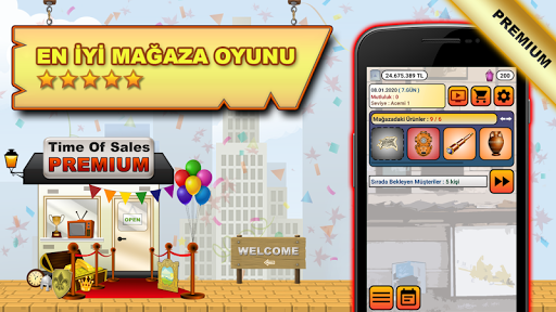 Time Of Sales PREMIUM, mobil telefon ve tabletlerde alışveriş oyunu, ikinci el mağaza işletme oyunu, mağaza simülasyon oyunu ve tycoon oyunu kategorilerinde çok başarılı bir oyundur.