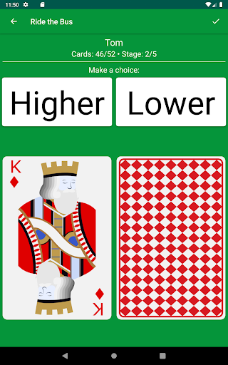 Bu oyunda, tüm oyuncular kartın ilk kartına göre daha düşük mü yoksa daha yüksek bir değere sahip olup olmadığını tahmin etmelidir; iki en düşük değer ve As en yüksek değerdir. Oyuncu yanlış cevap verirse, oyuncu içmelidir.