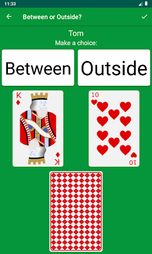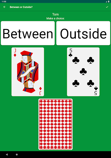 Bu oyunda, tüm oyuncular kartın ilk iki kartının aralığı arasında mı yoksa dışında mı olduğunu tahmin etmelidir. Örneğin, oyuncunun ilk iki kartı altı ve on ise, sekiz kart arasında, beşi ise dışarıda olacaktır. Oyuncu yanlış cevap verirse, oyuncu içmelidir.