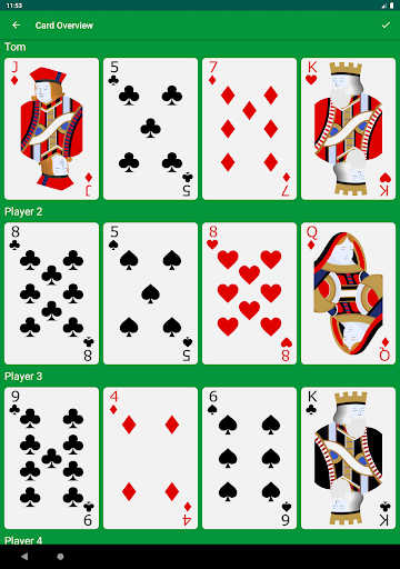 Bu oyunda, tüm oyuncular kartın ilk üç kartından biri ile aynı türden (maça, kupa, karo veya sinek) olup olmadığını tahmin etmelidir. Oyuncu yanlış cevap verirse, oyuncu içmelidir.