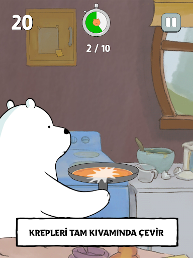 – Çevirme Var – Kutup Ayısı'nın dünyaca ünlü kreplerini mükemmel olana kadar çevir. Krep çevirmek için cihazını yukarı doğru salla. Ne kadar hızlı sallarsan krep o kadar yükselir. İstediğin kadar yükseğe çık ama sakın tavana çarpma!