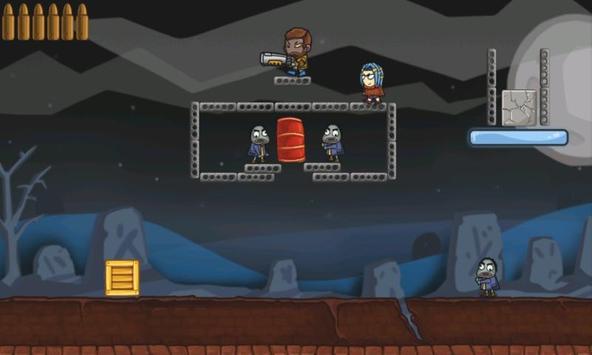 Ricochet bullets off walls and other objects in order to eliminate all the zombies. You have limited number of bullets in each round so, try to kill as many zombies as possible with a single bullet to win 3 stars.
