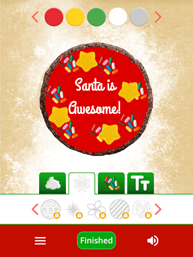 Want to send a cookie to Santa, your Scout Elf or Elf Pets®? In the Make a Cookie for Santa app, you can decorate a delicious treat using frosting, toppings, holiday patterns and icing, then send the cookie directly to Santa, or one of your other North Pole friends. When you’re done, push the “Finished” button and watch your treat get prepared and packed up for special delivery!
