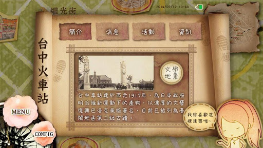 本APP目前服務範圍為台中市中區,以火車站為中心的著名景點。
