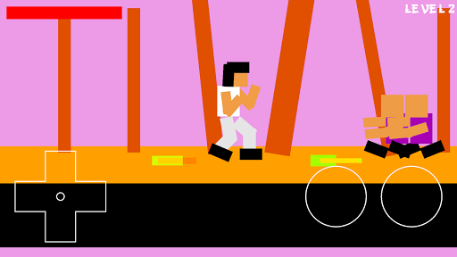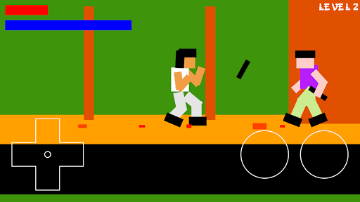 The player controls Lee with a four-way joystick and two attack buttons for punching and kick. Unlike more conventional side-scrolling games, the joystick is used not only to crouch, but also to jump. Punches and kicks can be performed from a standing, crouching or jumping position. Punches award more points than kicks and do more damage, but their range is shorter.