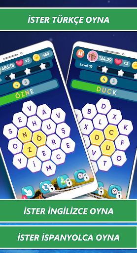 - Seviyeyi bitirmek için tüm kelimeleri bul.