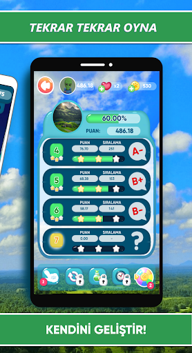 * Her harf için altın kazan ve yeni jokerler satın almak için bunları kullan.