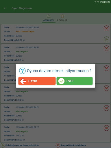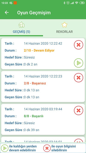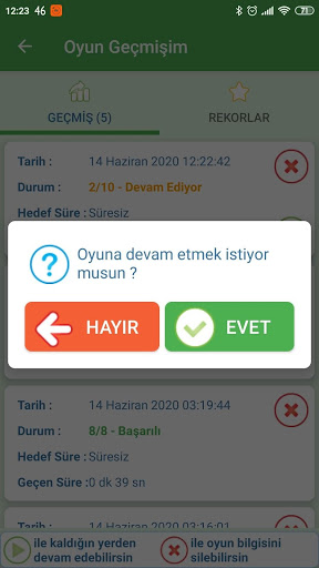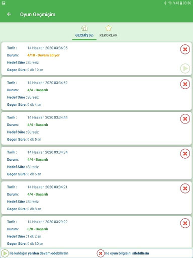 -Oyun Geçmişi : oyun geçmişinde geçmişinizi izleyebilir ve silebilirsin. Ayrıca en yüksek skorlarını da görebilirsin.