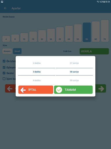 * Süre : Süresiz seçtiğinde (ön ayar budur) herhangi bir süre sınırı olmadan oyunu oynayabilirsin. Süreli seçtiğindeyse, tüm 3 lü eşleri bulamadan süre dolarsa oyun biter :)