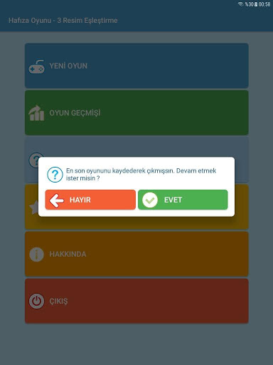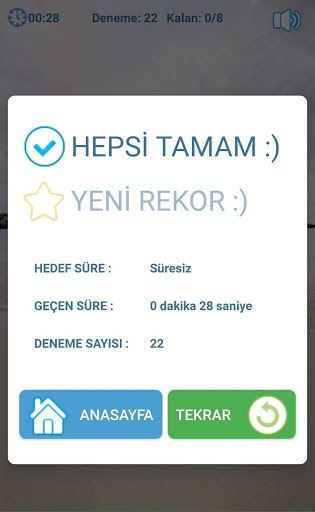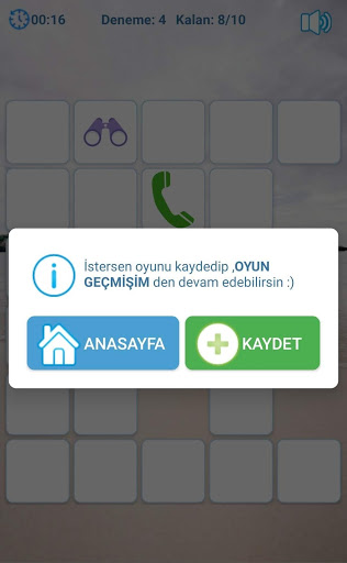 * Sesler : Seçili ise her resim açılışında, başarılı veya başarısız olarak oyunu bitirdiğinde ses gelir. Oyun esnasında da sesi kapatıp açabilirsin.