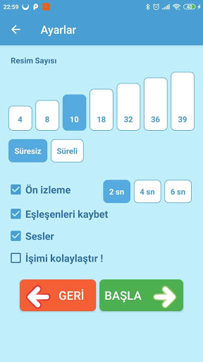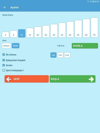 * Ön İzleme Göster : Seçili ise oyun başlangıcında kısa süreliğine tüm resimleri görebilirsin.