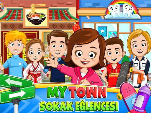 My Town: Sokak’a hoş geldin. Şimdi dışarı çıkıp oynama zamanı! Bizim sokağımızda okuldan sonra oyun oynamak için ihtiyacın olan her şey var. Sokağındaki kütüphaneyi ziyaret et, bir sürü eğlenceli kostümle hikaye anlatma partisi düzenle. Dişin mi ağrıyor? Hemen sokağın başındaki dişçiye git. Bak ne söyleyeceğim? Dişçinin nerede yaşadığını bilmek istiyorsan, onu evinde ziyaret et, misafir kabul etmeyi çok sever.