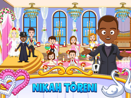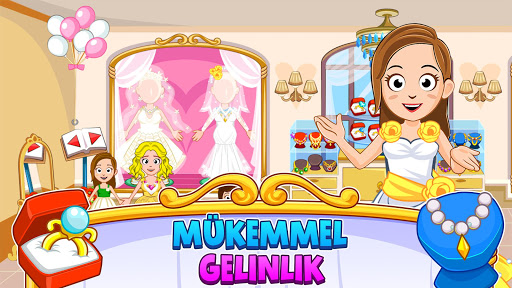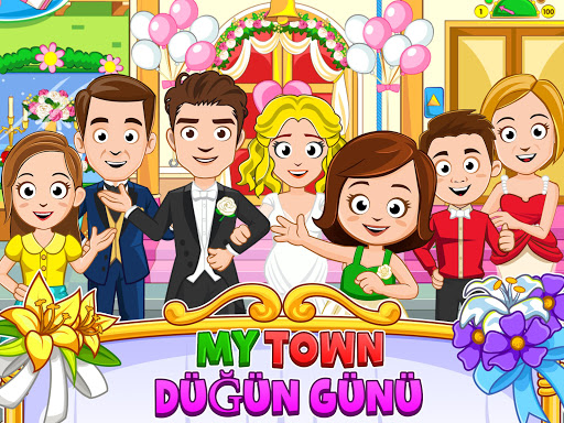 Yeni My Town : Düğün Günü oyunumuz kusursuz bir düğünde ihtiyaç duyulan mükemmel mekanların tümüne sahip. Pastane, Gelinlikçi, Çiçekçi ve hediyelik eşya mağazası, Düğün salonu ve 100üncü katta yapılan bir düğün partisi !