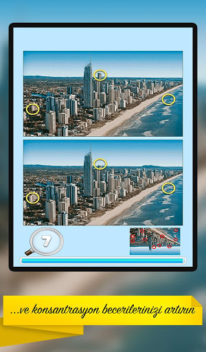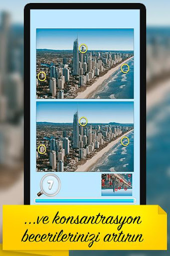 Spot Fark: Kentler oyunu ile yoğunlaşma ve gözlem becerilerinizi geliştirin. Zaman bitmeden önce iki şehir resimleri arasındaki 10 gizli farkı bulun. Bulmak ne kadar çabuk bulursa, daha yüksek skoru elde edersiniz.