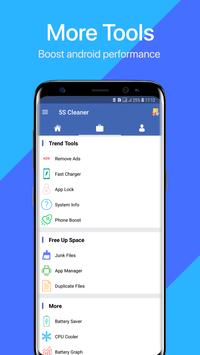AIO (Tất cả trong một) Siêu dọn dẹp và tăng tốc 5S là ứng dụng dọn dẹp và tăng tốc điện thoại android với chức năng Dọn rác, Tăng tốc điện thoại, Khóa ứng dụng, Sạc pin nhanh, Làm mát cpu và Tiết kiệm pin.