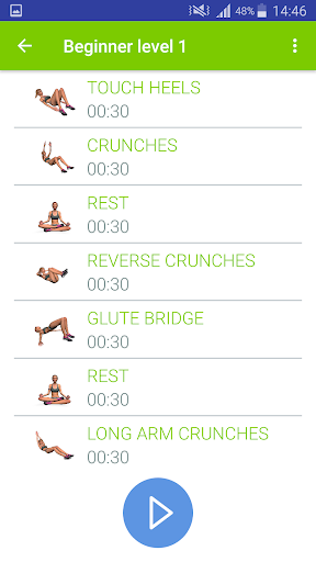 Có nhiều bài tập có trong tập luyện: leo núi, crunch xe đạp, giày cao gót cảm ứng, Plank, ngồi xoắn, vv Những bài tập này được khuyến nghị để đào tạo hoàn toàn cơ bụng và cơ lưng của bạn. Thực hiện các bài tập đúng cách, điều quan trọng đối với sức khỏe của bạn. Bạn có thể sửa đổi và sửa chữa các chuyển động của mình theo danh sách các bài tập trong ứng dụng của chúng tôi.