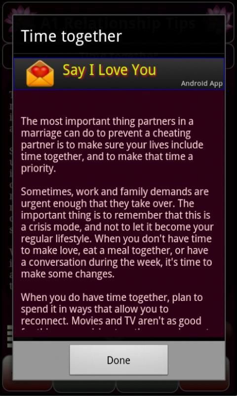 Be it marriage, live in, friendship, family relationships you need to work at it to make it meaningful and better for both of you. This app has numerous tips for making your relationships better, fulfilling and rewarding.
