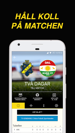 Aik Football chính thức ứng dụng mang đến cho bạn cơ hội để xem điểm nổi bật, theo dõi các trận đấu thông qua Livescore và đăng ký tin tức.