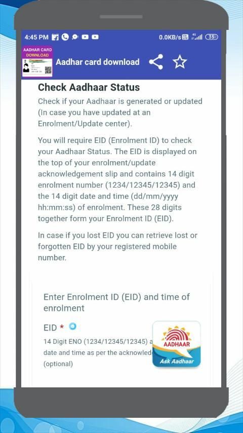 -Using download aadhaar card guide - aadhaar pe loan guide app you can download e adhar copy and check aadhar status also, addhaar app use for link mobile number with aadhaar and check aadhaar status.