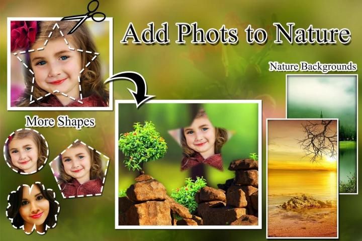 Add Your Photos to Nature HD Backgrounds by cropping with different shapes, save and share and Set as Wallpaper with Different Live animations like rain, snow animation etc,.