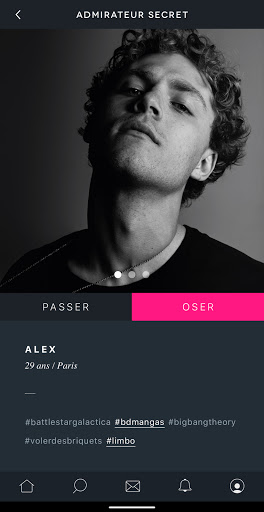 Trên trang web như trên ứng dụng, người dùng được mời tham gia bước đầu tiên. Bằng cách đặt một hồ sơ trong giỏ của họ hoặc chấp nhận sự quyến rũ của một người yêu cầu, họ là những người giữ dây cương.