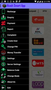 Akash Smart App offers simple and instant recharge for Aircel, Airtel, Vodafone, Tata Indicom Mobile, Reliance Mobile, Tata Docomo, BSNL, Idea, Videocon Mobile and Virgin Mobile and DTH services for Tata Sky, Dish TV, Reliance Digital TV, Sun Direct, Airtel Digital TV, Videocon d2h.