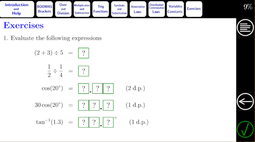 Trong hướng dẫn này, chúng tôi xem xét cách đánh giá các biểu thức với Bodmas và cách sử dụng một máy tính khoa học để đánh giá các chức năng trig. Sau đó, chúng tôi xem xét các luật cơ bản của Đại số (liên kết, phân phối và giao hoán). Cuối cùng, chúng tôi đã giới thiệu các hằng số, các biến độc lập, biến phụ thuộc và thay thế.