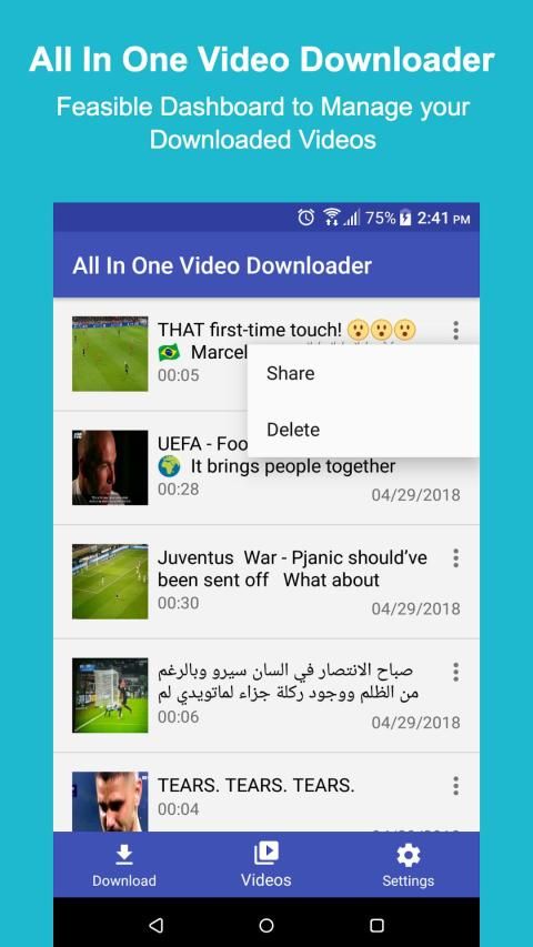 You can download any Facebook, Instagram and Twitter video just by copy the link and paste it into the app.