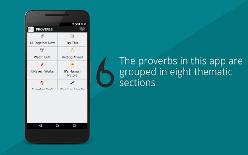 American English Proverbs is designed to help students of English understand and use proverbs that relate to everyday situations. The proverbs in this app are grouped in eight thematic sections, in order to facilitate student understanding and acquisition of proverbs for use in particular contexts. Within each section the proverbs are listed alphabetically.